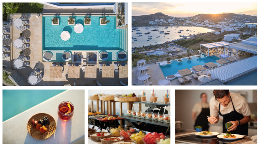 Celebrating the conviviality and flavours of the Aegean, the hotel’s fine-dining Infinity Restaurant focuses on carefully sourced and refined Mediterranean cuisine, overlooking Ornos Beach and tranquil ocean vistas beyond. Against the backdrop of the Aegean sunsets, guests can enjoy theatrical cocktails and innovative mocktails at the vibrant Infinity Bar in a relaxed poolside setting soundtracked by live DJs.
