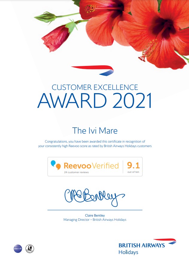 The Ivi Mare is awarded with the British Airways Customer Excellence Award!
